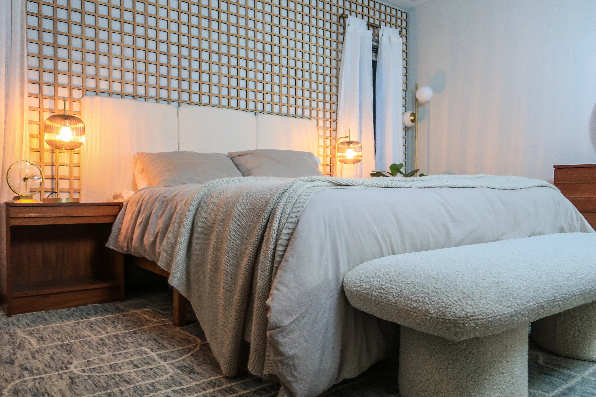 since we moved into our home in august 2021, life has been chaotic. between moving states, job changes, second dog, and now this business! they have all been amazing things, but i have been neglecting the interior of our home. i’m not sure what it was, but i recently changed my mindset and decided i wasn’t going to live in chaos anymore! it was finally time to make this home… a home. starting with our master bedroom! i was finally ready to ditch our old ikea bedframe for something more luxurious and sophisticated. i came across article (the furniture company) and their Noel Launaria boucle headboard. it was sooo dreamy! but the price… was a nightmare. it’s $699 for a 4-panel headboard! that’s just crazy. so i teamed up with HART tools to dupe it.