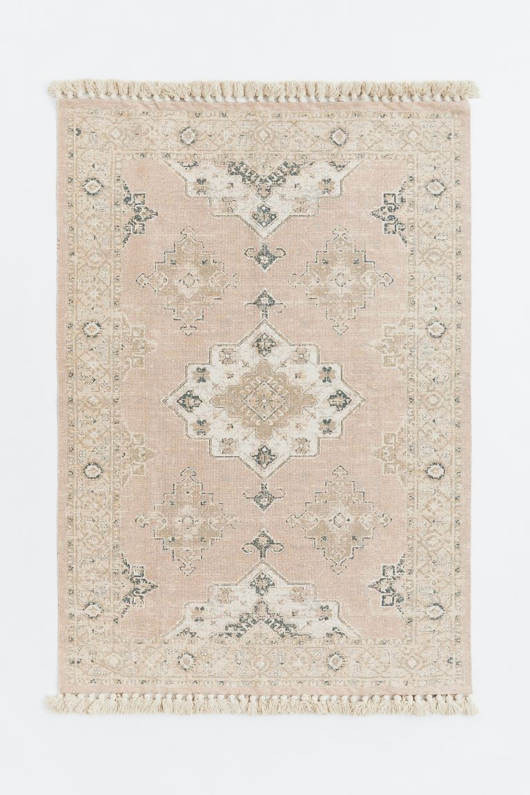 A “vintage” rug without the vintage price. Fringe, pale pinks, and that pattern… She's perfect! This rug also comes in smaller sizes as well.