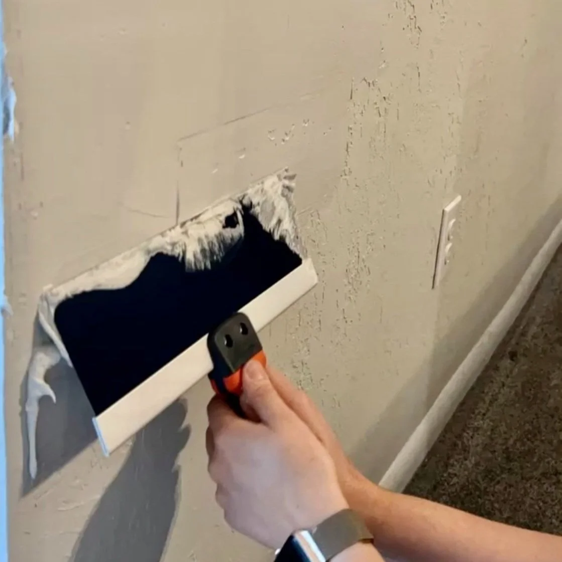 about a year ago, we moved into our first home. we bought it sight unseen since my partner was deployed half way across the world from me at the time. once we got there, i realized that our EVERY wall in our home had orange peel texture. i’ve lived with it for the past 13 months, but finally decided to do something about it! i had asked around for others recommendations on how to solve my problem. the recommendations i was given included demolishing my entire house, putting up plywood over it, and the most frequented answer: skim coating.