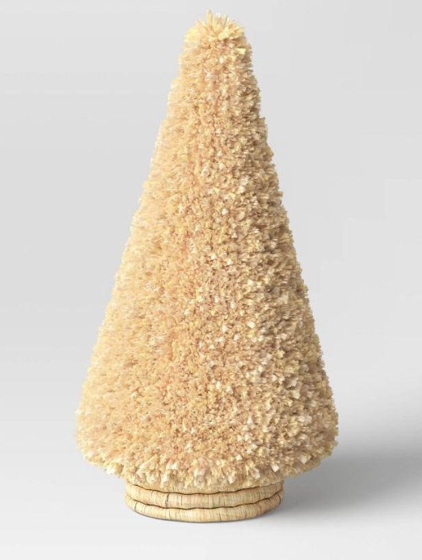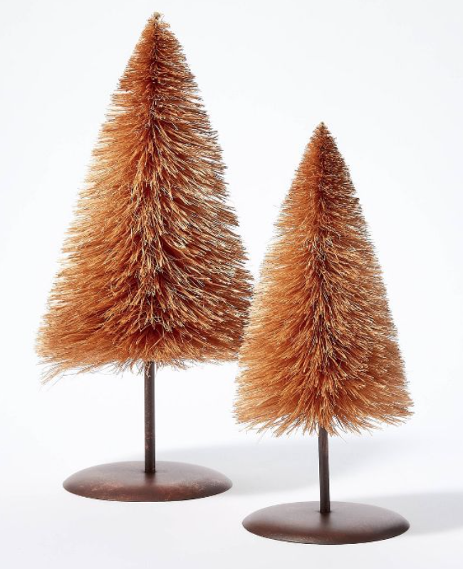 Feel free to throw some trees in the mix, just keep it neutral. Browns, tans, and golds are safe to start early and even to keep up all season if bright greens and reds aren't your jam. These natural Threshold Bottlebrush Trees placed on a stack of books for height & trees of different sizes and textures throughout are wonderful transition pieces for that time between Thanksgiving and Christmas.